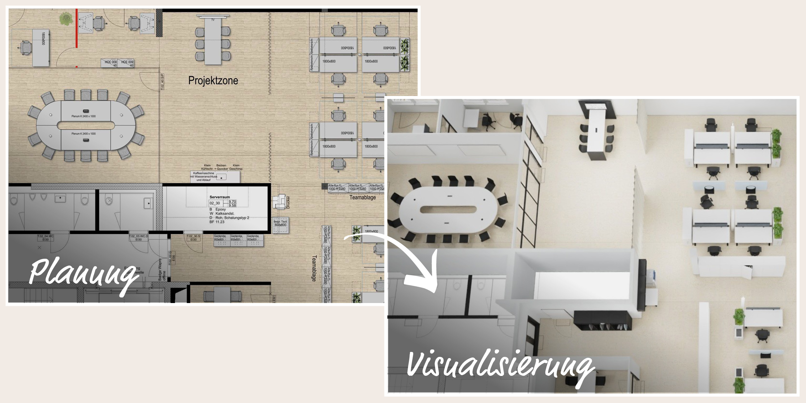 So schaffen wir Entscheidungssicherheit und ein gemeinsames Verständnis für das Zielbild. Die Visualisierung wird zur verbindlichen Grundlage für die Umsetzung. So stellen wir sicher, dass aus der gemeinsam entwickelten Vision eine Arbeitsumgebung entsteht, die in der Realität genauso überzeugt wie in der Planung.